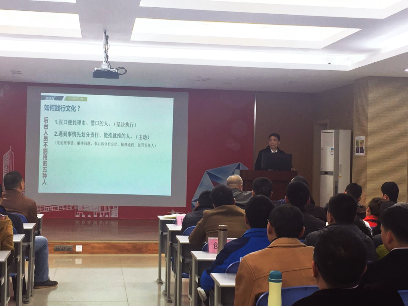 此次培訓,李董分別對公司新的核心價值觀、企業(yè)精神、使命愿景等文化要素進行了闡述和解讀,并重點就正升精神在各部門的體現(xiàn)、文化踐行、文化營造、文化系統(tǒng)等多個維度進行了宣貫。在文化踐行方面,李董介紹了營銷、技術(shù)、后臺、后勤等崗位不能用的“五種人”,“劍指”公司在文化營造方面,要“不能成為那五種人、不能招聘五種人、做出表率影響那五種人、通過考核與獎懲改變那五種人、通過淘汰遠離那五種人”。鮮明的指出了公司在文化體系打造、日常踐行、文化考核等諸多領(lǐng)域的方法和技巧。