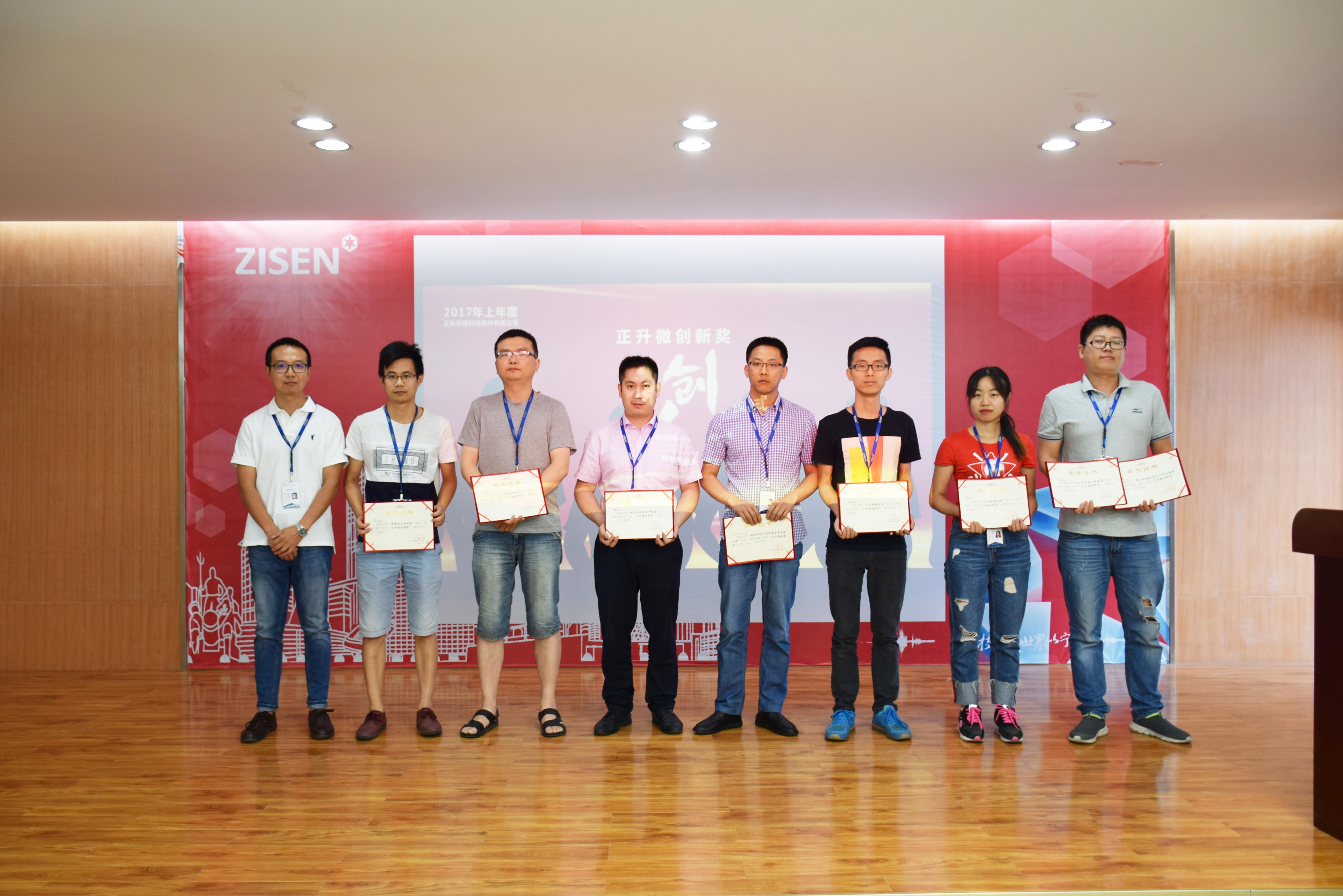 分享課結(jié)束后,公司進(jìn)行了2017年上年度“正升微創(chuàng)新獎”頒獎儀式,由創(chuàng)新學(xué)院院長張曉杰分別為張奎、劉力、楊秀伍、何映氚、賀廷江、何青松等7位獲獎代表頒發(fā)獲獎證書及獎金。
